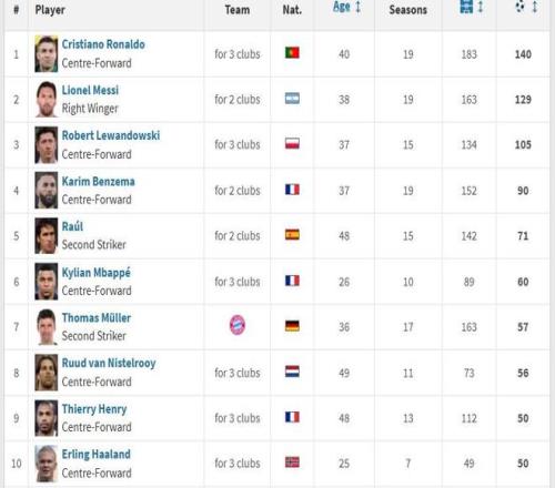 然而,哈蘭德的歐冠客場進(jìn)球占比僅有32%(16/50),在歐冠歷史射手榜前十中(均至少打進(jìn)50球),只有勞爾的客場進(jìn)球占比(31%)低于哈蘭德。