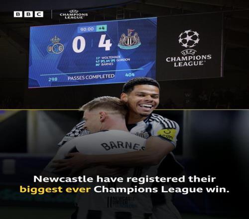 據(jù)統(tǒng)計(jì),這是紐卡斯?fàn)柭?lián)隊(duì)史在歐冠賽事中取得的最大比分差距的勝利。