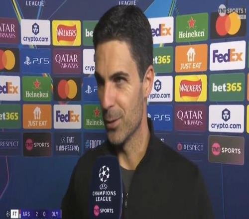 歐冠聯(lián)賽階段第二輪,阿森納主場2-0擊敗奧林匹亞科斯,賽后,槍手主帥阿爾特塔接受了TNT體育的采訪,他稱贊了厄德高和全隊的表現(xiàn),表示很高興取得勝利并零封對手。