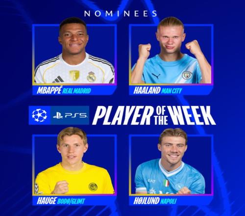 雷速體育10月2報道 歐冠聯(lián)賽階段次輪戰(zhàn)罷,歐冠官方發(fā)布了本輪的最佳球員候選名單,姆巴佩(皇家馬德里)、哈蘭德(曼城)、海于格(博德閃耀)和霍伊倫(那不勒斯)成功入選。