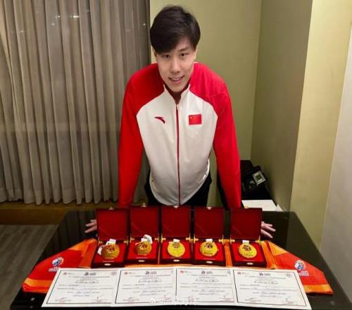 覃海洋社媒曬出5枚游泳亞錦賽金牌,祝愿家國(guó)共好