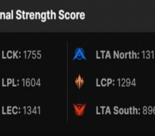 LCK和LPL保持不變,LEC高于LTA North,LCP緊隨其后,LTA South保持不變