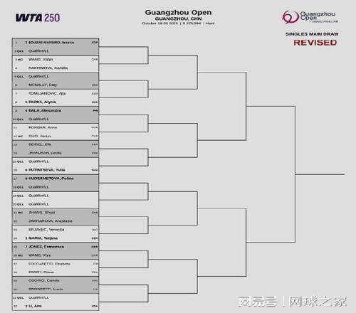 我們再來關(guān)注本周賽事。北京時間昨晚,WTA250廣州國際女子網(wǎng)球公開賽官宣了正賽簽表。馬內(nèi)羅、安-李、瑪利亞、伊埃拉作為前四號種子出戰(zhàn)。中國有四朵金花參賽,首輪對陣如下:王雅繁 vs 拉克西莫娃、郭涵煜 vs 邦達(dá)爾、張帥 vs 扎哈洛娃、王曦雨 vs 瓊斯。