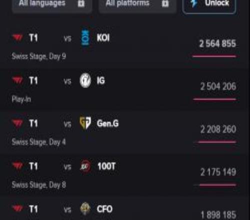 S15世界賽海外收視率情況更新:T1vsMKOI超越入圍賽成收視第一名 魚頭 2025-10-26 01:39:41 電競體育10月25報(bào)道 S15海外直播收視率更新,今天T1vsMKOI的瑞士輪出線生死戰(zhàn)熱度來到第一,超越T1vsiG的入圍賽Bo5。 超越 更新 海外 世界 情況 上一篇: Tian看八強(qiáng)抽簽TES抽G2AL抽T1:滔博哥苦盡甘來了!這簽真可以! 下一篇: 更看好T1贏下AL一點(diǎn)!S15八強(qiáng)賠率:AL對T1幾乎持平TES、GEN領(lǐng)先