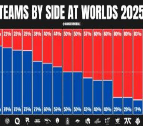 外媒統(tǒng)計S賽各隊紅藍占比:GEN藍色占比80%T1紅色占比86%