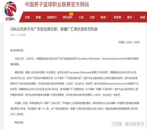 不過(guò),很顯然,他們還是低估了籃協(xié)對(duì)于該類事件的重視以及處罰力度。近日,中國(guó)籃協(xié)終于針對(duì)吉倫沃特和哈雷爾開(kāi)出終極罰單。根據(jù)籃協(xié)開(kāi)出的罰單顯示,吉倫沃特和哈雷爾都會(huì)被禁賽三個(gè)月。這其中吉倫沃特從2025年10月13日開(kāi)始執(zhí)行,2026年1月12日結(jié)束。而哈雷爾則從2025年11月5日,到2026年2月4日結(jié)束。不過(guò),由于CBA新賽季開(kāi)賽延遲,他倆其實(shí)還是能夠趕上新賽季大部分比賽的。