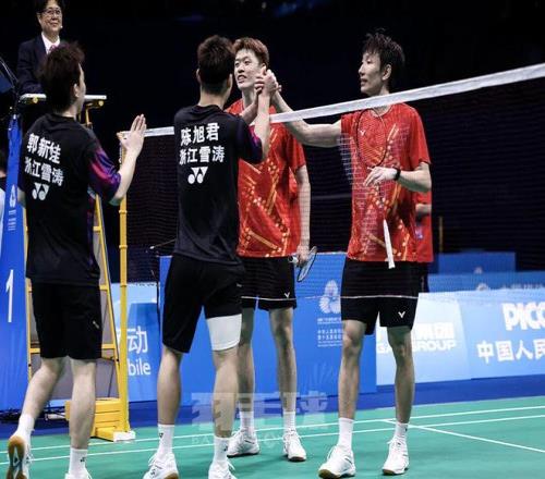 隨后的二單和二雙,江蘇和浙江分別各添一分,江蘇二單陸光祖以23比21、21比17戰(zhàn)勝胡哲安,浙江二雙陳旭君/郭新娃以21比15、21比15戰(zhàn)勝陳柏陽/黃荻。二雙比拼的場點上,浙江隊的郭新娃不幸倒地受傷,但他在經(jīng)過簡短處理后仍堅持贏下比賽。為避免傷勢加重,他在后臺和參加頒獎禮時都由輪椅代步,領(lǐng)獎時也在隊友的攙扶下走上領(lǐng)獎臺,令人動容。