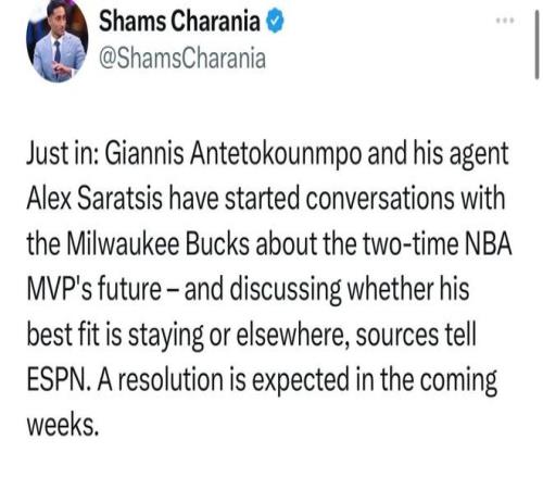 同樣來(lái)自爆料王Shams的消息源,倘若字母哥申請(qǐng)交易,涉及的球隊(duì)將遠(yuǎn)不止紐約尼克斯。薪資專家Marks對(duì)此表示,其余29支球隊(duì)都會(huì)跟雄鹿打電話詢價(jià)字母哥。