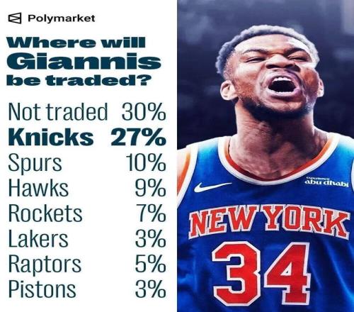 字母哥新下家賠率已經(jīng)出爐,尼克斯、馬刺和老鷹分列前三,火箭第四,湖人第五,猛龍第六,活塞第七。