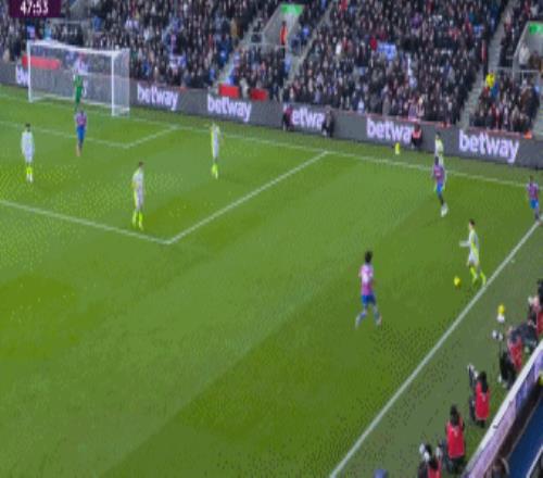 第41分鐘,B席右路回做,努內(nèi)斯斜傳送到禁區(qū)后點(diǎn),哈蘭德拍馬趕到頭球攻門得手,曼城1-0水晶宮。