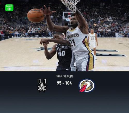 第四節(jié)馬刺文班亞馬拿下6分,鵜鶘錫安-威廉森拿下6分,最終馬刺95-104不敵鵜鶘