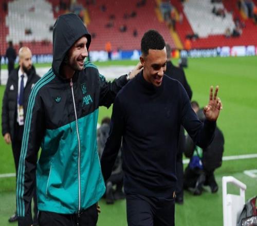 關(guān)系不錯(cuò),阿諾德重返安菲爾德,和索博肩并肩走入球員通道