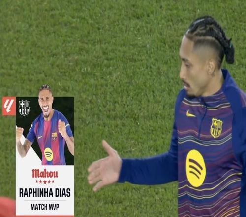 打入一球,拉菲尼亞當(dāng)選巴薩vs馬競(jìng)?cè)珗?chǎng)最佳球員 -